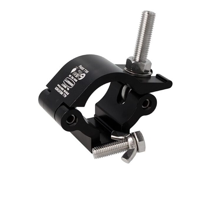 Ideal for use on trussing as it will not damage the cords. Supplied with a sachet of Copper Grease to prevent Stainless threads galling, and available in a powder coated black finish.