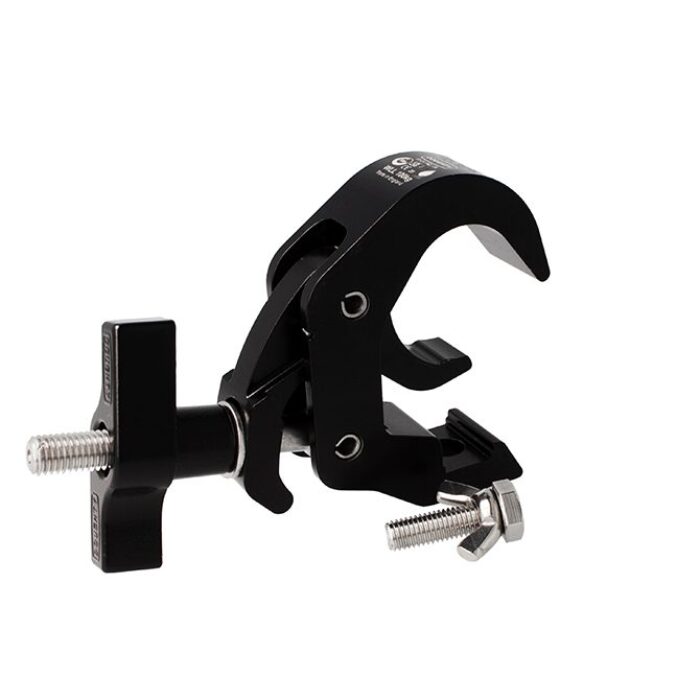 Ideal for hanging moving heads on trussing as it will not damage the cords. Available in a powder coated black finish.