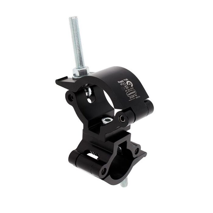 Consists of a pair of high tensile extruded aluminium clamps back to back, locked at 90 degrees. Suitable for 60mm to 63mm diameter tubes one end and 48mm to 51mm tubes the other. It has a WLL of 500Kg and uses a pair of 50mm wide clamps. Available in polished silver or powder coated black.