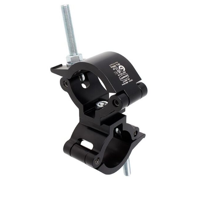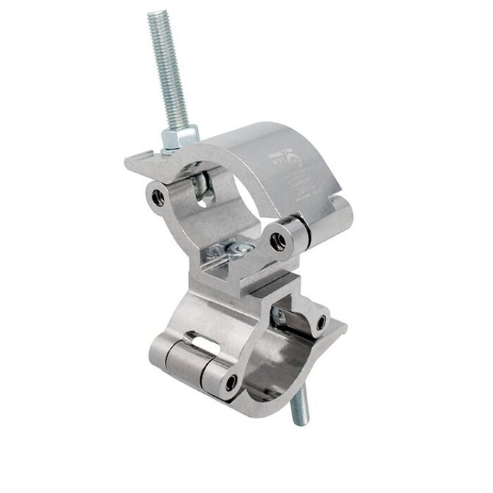 Consists of a pair of high tensile extruded aluminium clamps back to back, locked at 90 degrees, that are suitable for 60mm to 63mm diameter tubes. It has a WLL of 500Kg and uses a pair of 50mm wide clamps. Available in polished silver or powder coated black.
