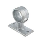 A galvanised, malleable iron fitting, designed to be used as wall mounting bracket for handrails.