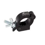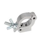 A high tensile extruded aluminium clamp that is suitable for 48mm to 51mm diameter tubes. It has a WLL of 500Kg and is 30mm wide. Slotted to hold captive an M12 nut or bolt head, it is ideal for where height is at a premium and a clamp that fully encompasses the tube is required. Suitable for cross bracing and suspensions where a firm fixing is required and a claw clamp is not appropriate. Available in polished silver or powder coated black.